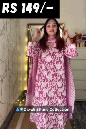 Graceful White Cotton Kurta with Indigo Printed Jacket and Dupatta