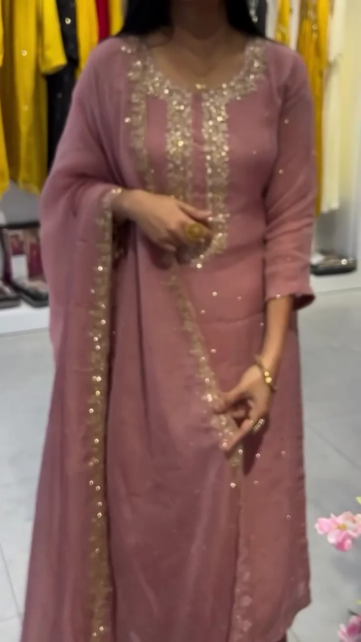 Be the first to review “Elegant Mauve Georgette Salwar Kameez Set – Hand-Embellished Kurta with Sequin-Bordered Dupatta”