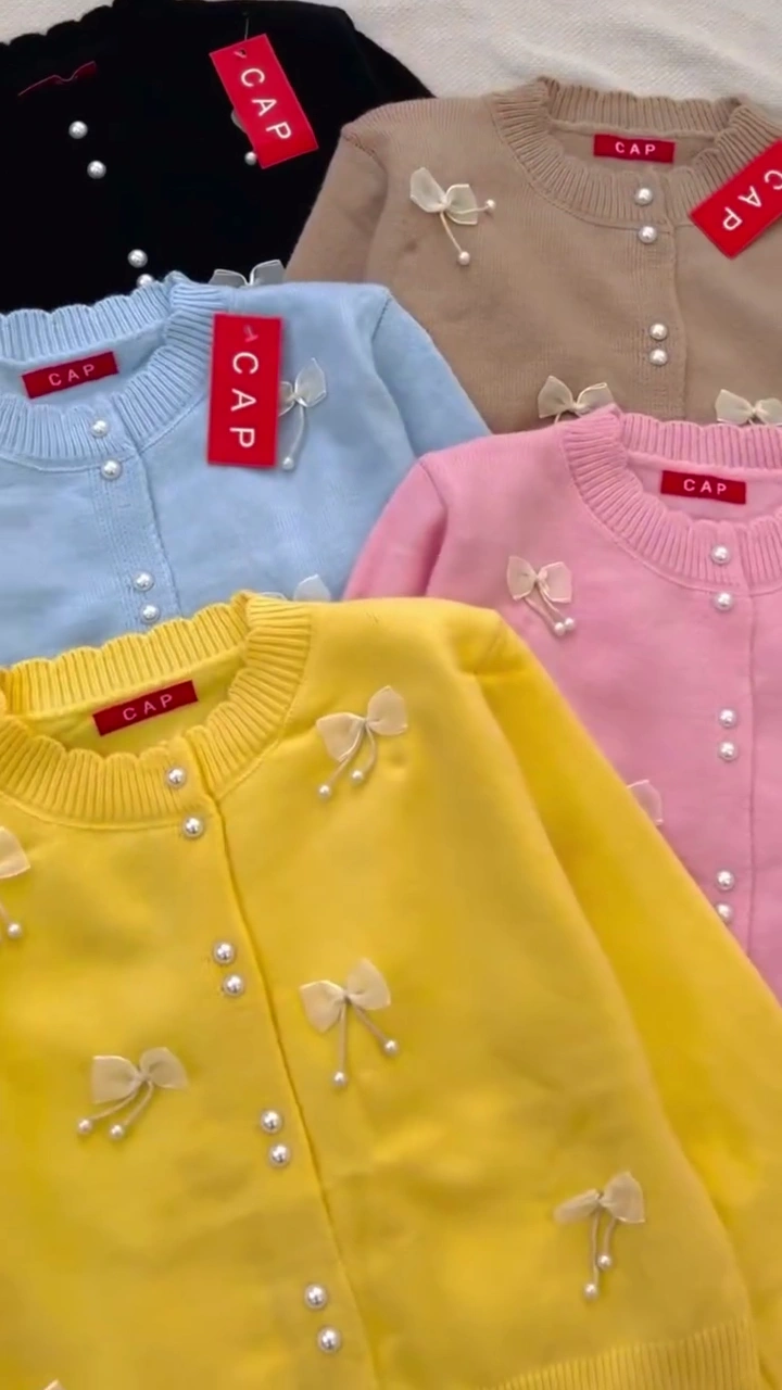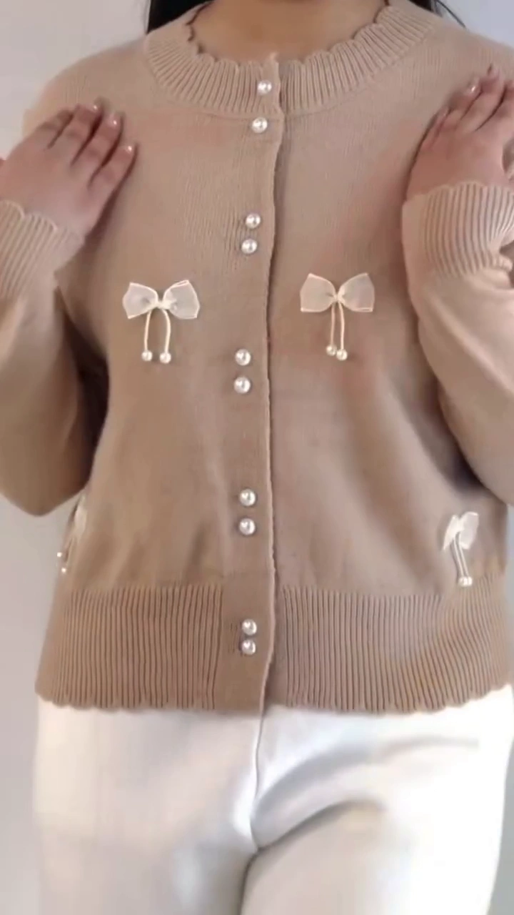+ Free ShippingElevate your daily wardrobe with our Pearl-Embellished Bow Cardigan, a perfect blend of vintage charm and modern sophistication. Crafted from a soft, high-quality knit, this cardigan is designed to offer both warmth and a delicate, dainty silhouette. The standout features include hand-finished sheer organza bows and shimmering faux pearl buttons that add a touch of luxury to a classic staple.