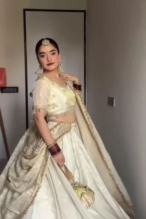 Royal Cream & Gold Banarasi Silk Lehenga Choli with Intricate Zari Work & Tassels