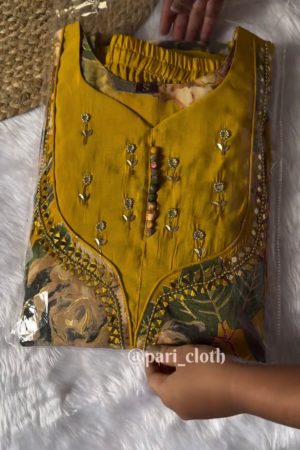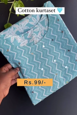 Traditional Cream Cotton Kurta Pajama Set with Mirror Work Detailing and Printed Dupatta