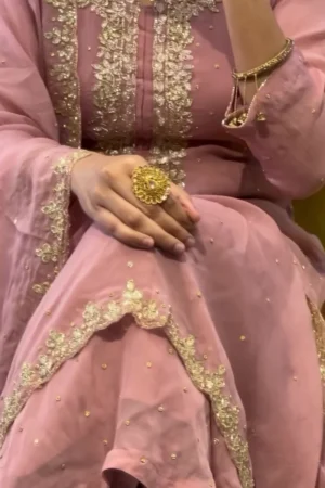 Elegant Mauve Georgette Salwar Kameez Set – Hand-Embellished Kurta with Sequin-Bordered Dupatta