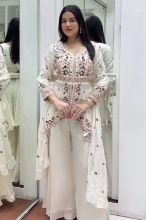White Sharara Set for Women & Girls – Flared Design, Soft Fabric & Perfect for Festive, Wedding, and Party Wear