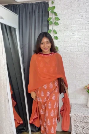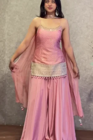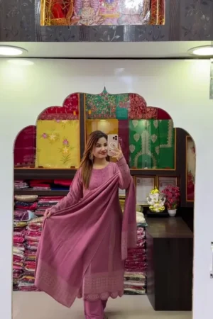 Elegant Mauve Self-Embroidered Chanderi Silk Suit Set with Scalloped Borders