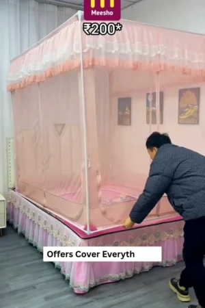 Premium Foldable Canopy Mosquito Net for Double Bed – Elegant Pink Lace Design