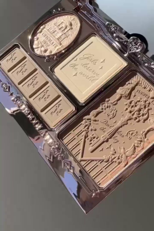 Flower Knows Chocolate Series – Luxuriously Sculpted Contour & Highlighter Palette with Vintage Baroque Detailing and Whimsical Engraved Mottos
