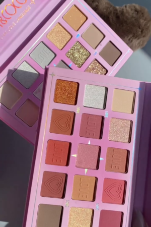 Vibrant Love-Themed Eyeshadow Palette Featuring Rich Mattes, Sparkling Metallics, and Shimmering Glitters for Bold and Playful Eye Looks