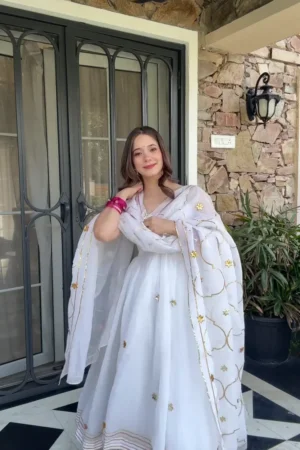 Ethereal Pearl White Anarkali Suit Set with Gota Patti Embellished Organza Dupatta